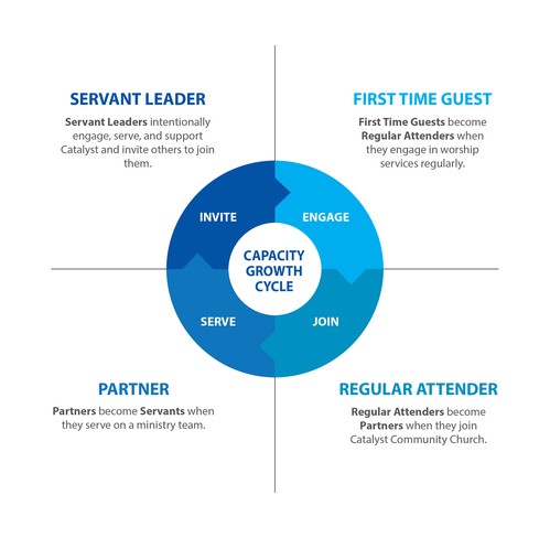 So often when the topic of church growth is discussed, the focus is the number of people attending and/or the size of the giving received. While these are growth indicators, they are not the full picture of what a growing healthy church should look like. At Catalyst, we view growth as a three-dimensional goal. We want to grow in our capacity, community, and maturity. Each of these areas is an important focus. Like a three-legged stool, we believe our growth must be balanced for the church to be on solid footing. Each of our key areas of growth have a clear plan and path to help each person find where they are and take a next step. Here is what growth looks like at Catalyst.
