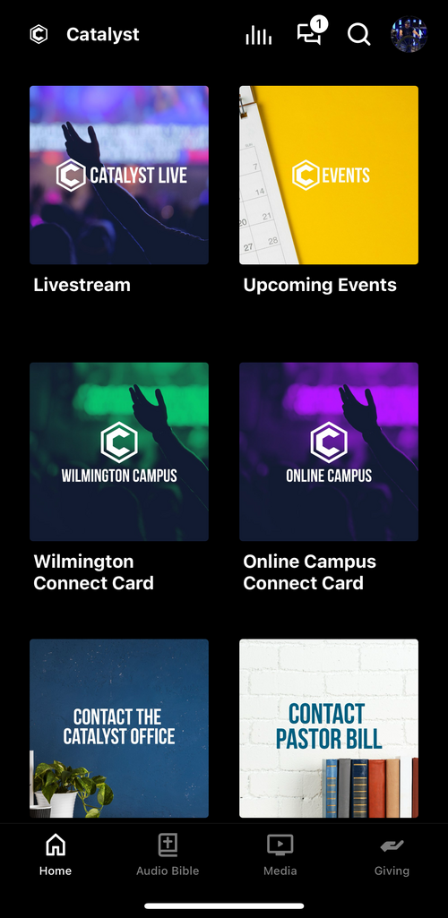 At Catalyst, our vision is to be a community that represents Jesus. Part of being a community is being connected to one another. We can't do that if we only see or speak to each other one day a week. Enter the Catalyst302 app. Our app is your everyday connection to our church wherever you are. In the app, you can engage with upcoming events, use private messaging for groups and teams, watch sermon and service media, engage in live chat on the livestream, and read or listen to our built-in Bible app. Connection is key because content plus connection builds community. Will you join ours?